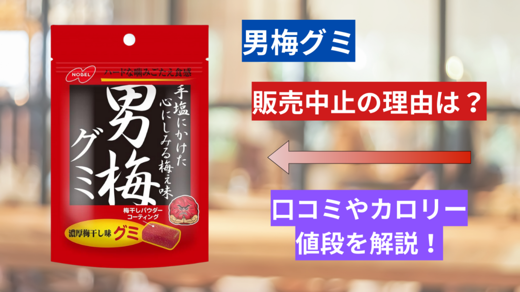 最近、男梅グミを見かけなくなった気がするけど、販売中止になったの? 男梅グミの販売状況について気になる方が多いですね!この記事では、販売中止の噂の真相や、口コミ、カロリー、値段について詳しく解説していきます。 こんなあなたにおすすめ! 男梅... -