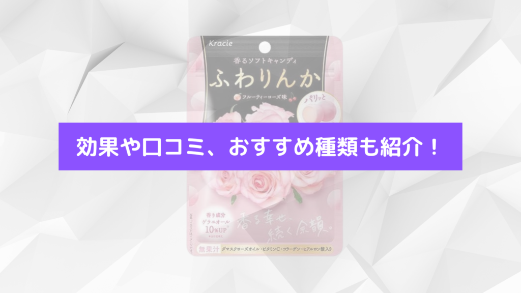 ふわりんかは、販売終了ではなくリニューアルや店舗事情で見つけにくくなっているだけです。ダマスクローズオイル配合で香りを楽しめるソフトキャンディとして、気分転換やリフレッシュにぴったりです。