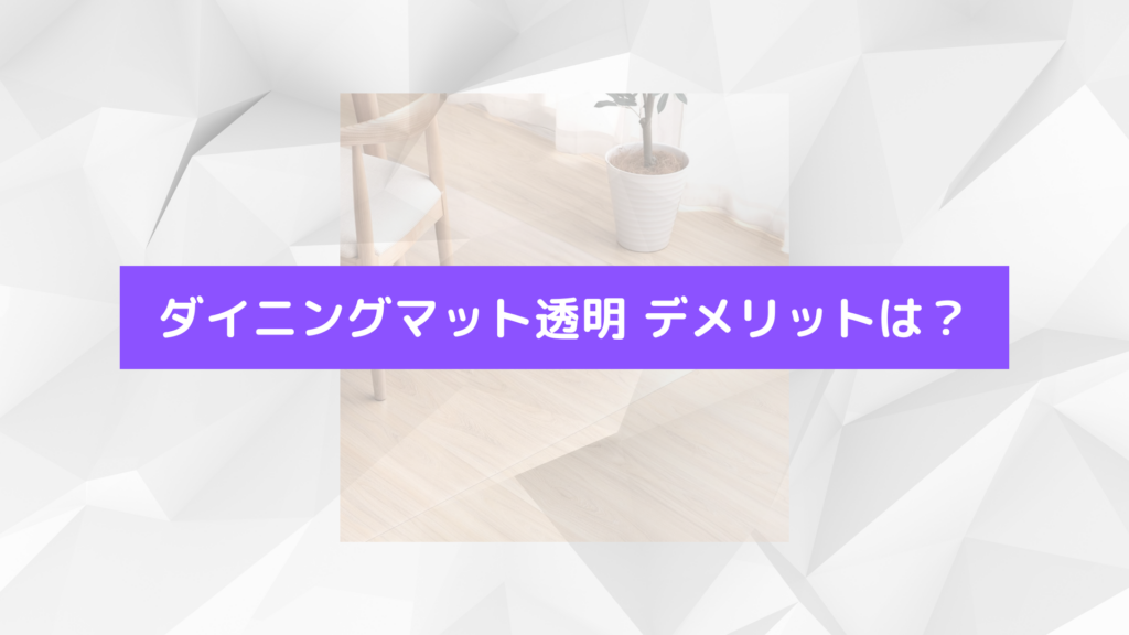 確かに透明なダイニングマットは見た目が良いですよね!でも、デメリットについても知っておくと失敗が防げますよ。それに、ニトリのマットはコスパが良いって評判ですが、詳しく特徴を見てみると選びやすいと思います!